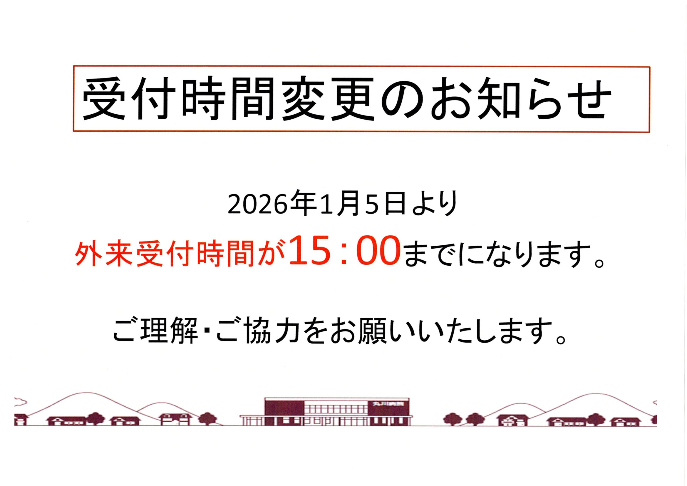 2026年1月5日より外来受付時間が変更となります。